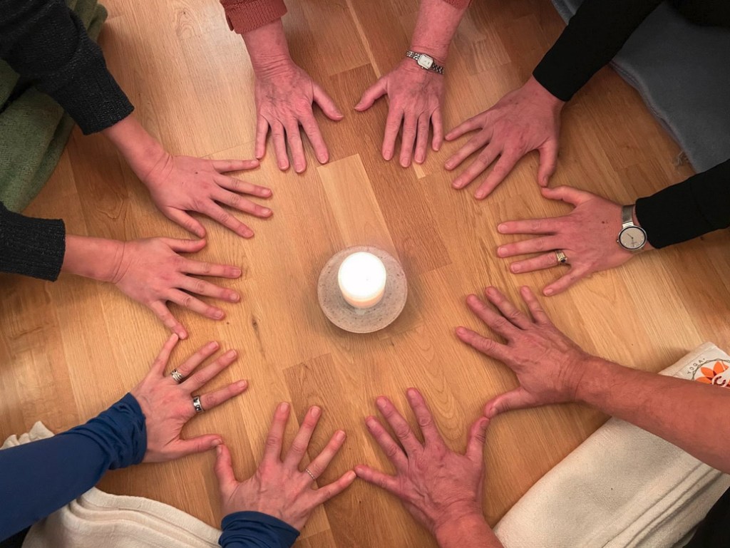 Joining fingers to end a Authentic Movement retreat.